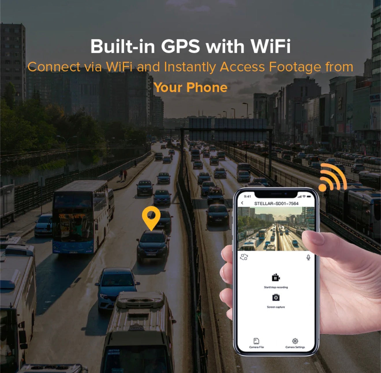 SMART FEATURES: Built-in G-sensor for automatic incident detection and recording, plus Wi-Fi connectivity for easy file transfer via mobile app